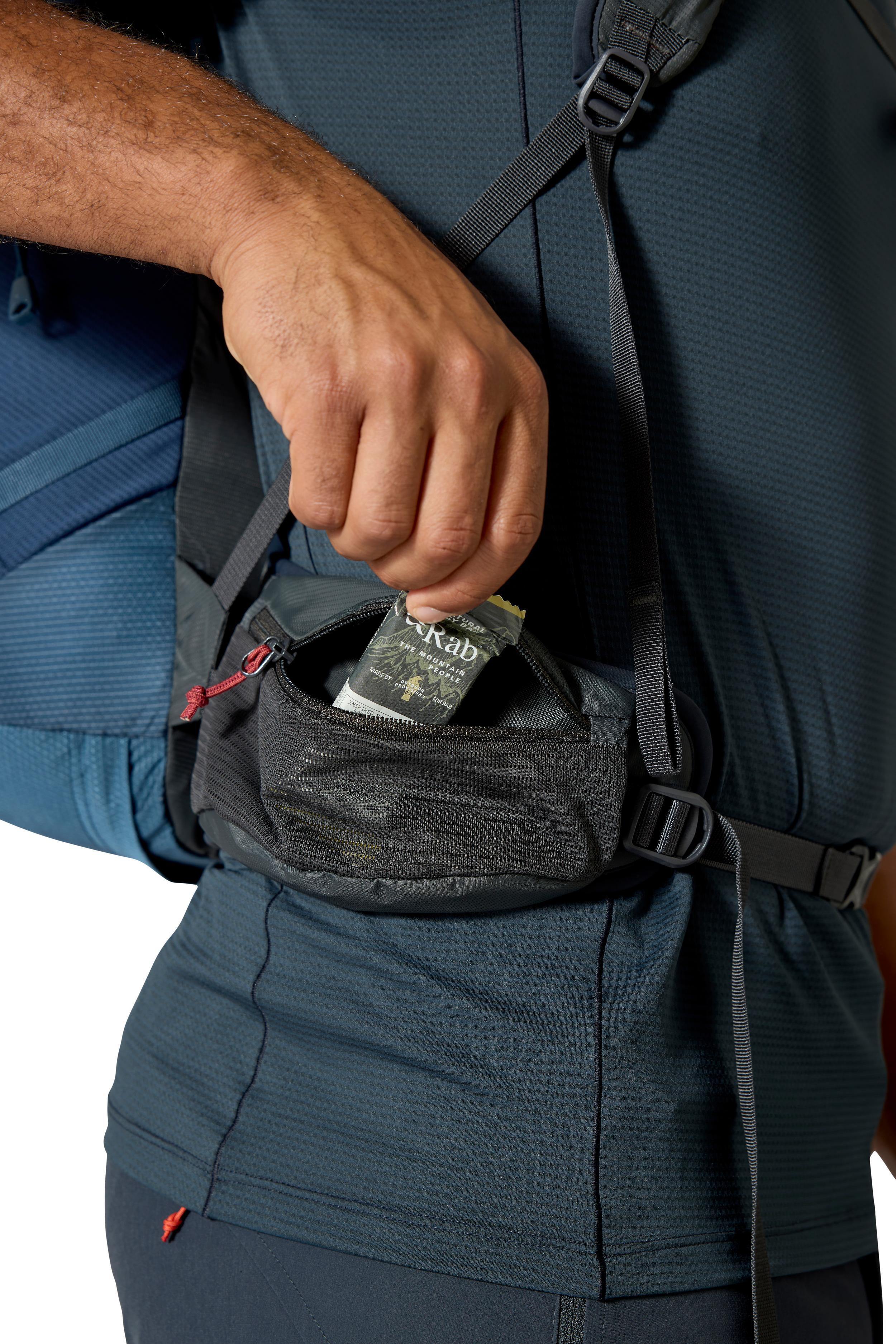 • Zapinane na zamek kieszenie na pasie biodrowym idealne na przekąski, żele lub kompas