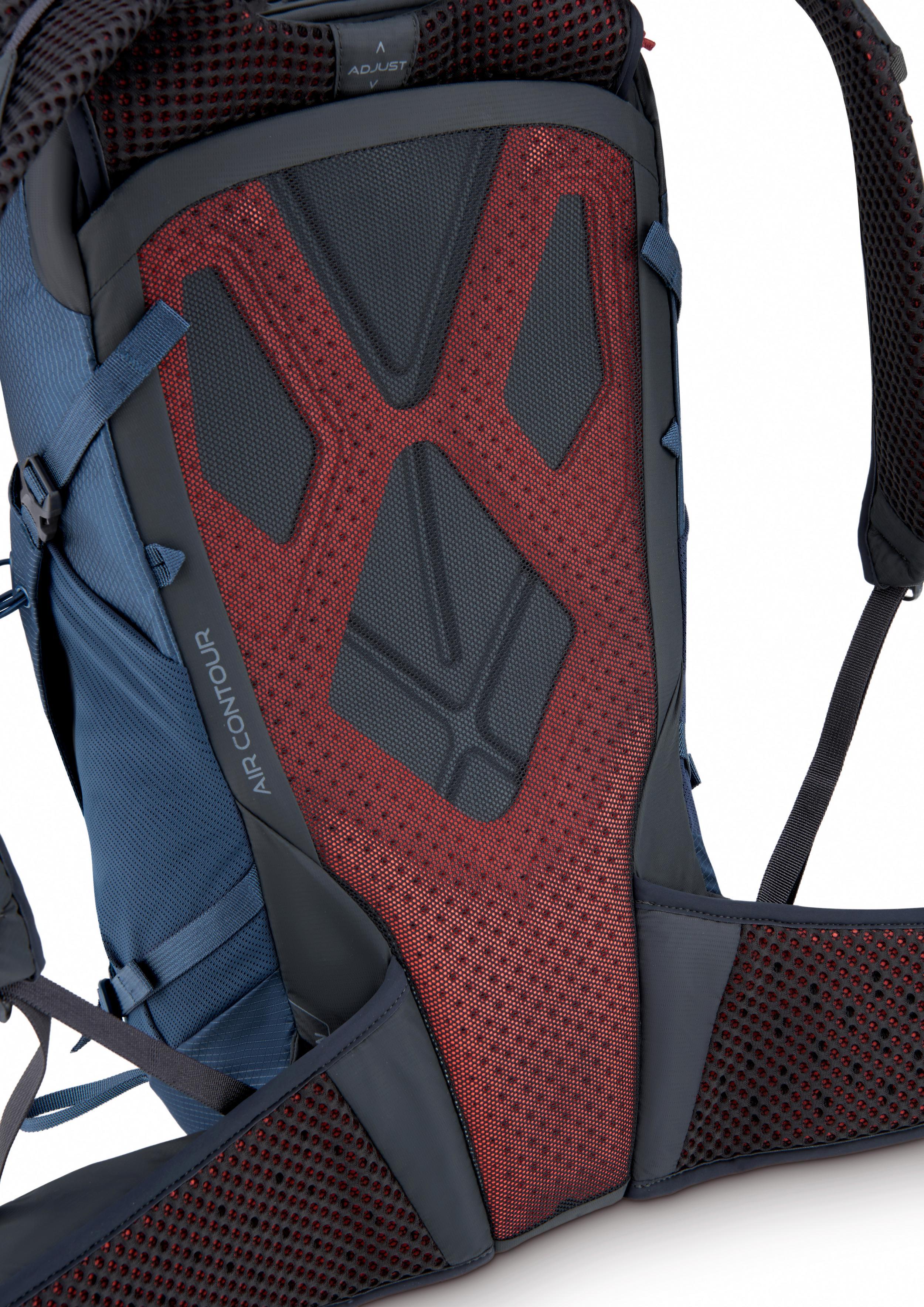 • Formowany próżniowo, wstępnie wygięty i uformowany tylny panel ABS o półsztywnej strukturze, zachowuje kształt plecaka, jednocześnie zginając się wraz z ciałem